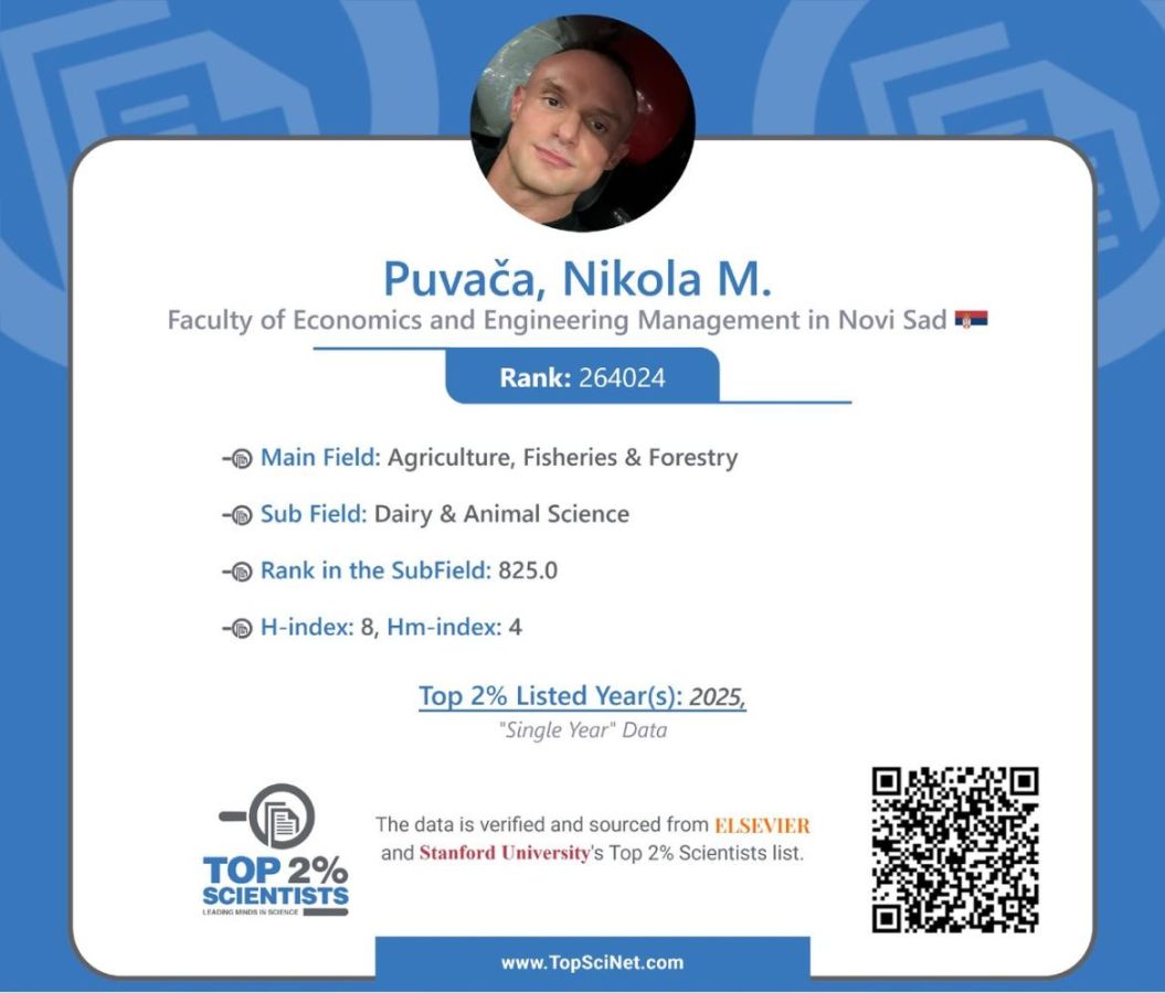 Sa ukupnim H-indeksom 8 i Hm-indeksom 4, kao i rangom 264.024 među više miliona naučnika analiziranih globalno, profesor Puvača već godinama svojim radom, posvećenošću i međunarodnim angažmanom daje neprocenjiv doprinos razvoju nauke i akademske zajednice, kako u Srbiji, tako i u inostranstvu.