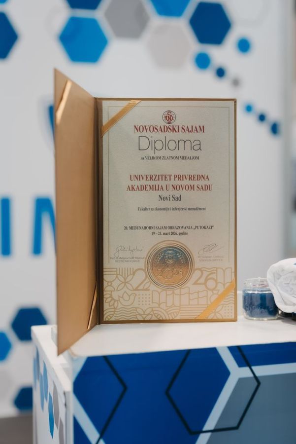 Univerzitet Privredna akademija u Novom Sadu,dodatno je potvrdio kvalitet svog rada osvojivši šampionski pehar za kvalitet, a FIMEK diplomu sa velikom zlatnom medaljom Novosadski sajam, što predstavlja značajno priznanje za doprinos obrazovanju i povezivanju akademskog i poslovnog sektora.