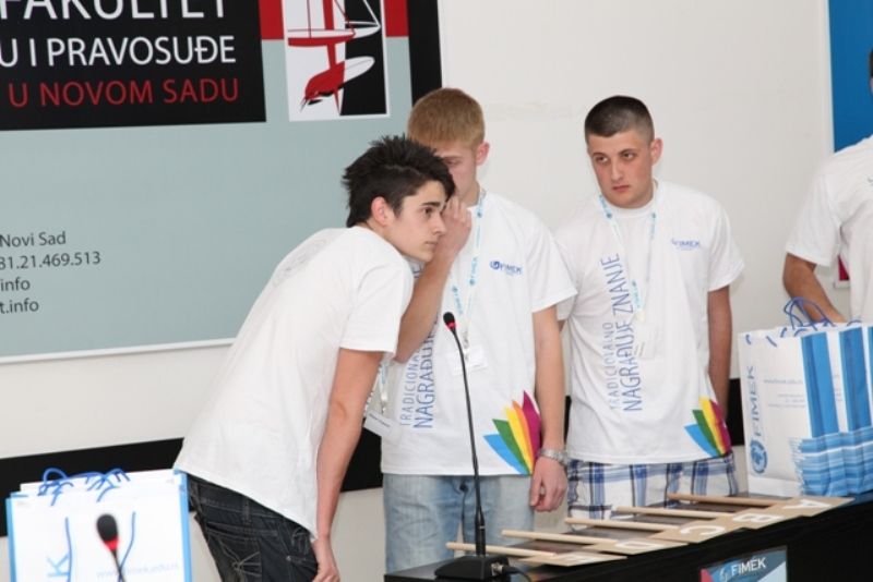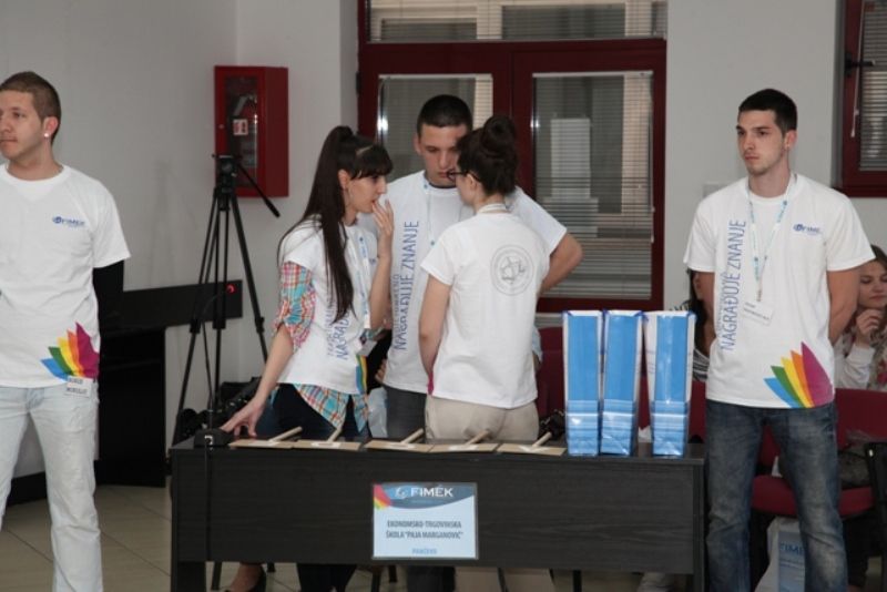 S obzirom na to da je naša misija bila da maturanti, kao budući akademski građani, pokažu svoje znanje i pre nego što dobiju indekse, i da za to budu nagrađeni, nijedna škola koja se plasirala u finale nije otišla praznih ruku tj. svi finalisti su bili nagrađeni za pokazano znanje. Nagrade su koncipirane tako da se nagradi znanje i budućim studentima pruži motiv za dalje obrazovanje. Stoga su, pobednici, maturanti Gimnazije „Stevan Puzić“ iz Rume dobili putovanje u neku od evropskih prestonica, po njihvom izboru, kao i popust na školarinu u vrednosti od 40% na FIMEK-u, odnosno Pravnom fakultetu za privredu i pravosuđe u Novom Sadu, takođe po izboru pobedničke ekipe. Pored navedenog pobednici su dobili i knjige koje je darovao FIMEK, knjige izdavačke kuće „Mate“, kao i knjige izdavačke kuće „The English Book“. Takođe, pobednici su dobili i besplatan kurs Brzog čitanja od edukativnog centra Memorija, kao i vaučere za popust od 20% za bilo koji od 28 jezika u Centru za strane jezike Menhetten i sezonske ulaznice za kupalište „Štrand“. Drugoplasirana ekipa, maturanti Zrenjaninske gimnazije iz Zrenjanina su, pored popusta na školarinu u vrednosti od 30% na FIMEK-u ili Pravnom fakultetu za privredu i pravosuđe, dobili i Gepard patike po izboru, knjige koje je darovao FIMEK i knjige izdavačke kuće „The English Book“. Pored navedenog, druga nagrada su i vaučeri za popust od 10% za aranžmane turističke agencije Oktopod travel, kao i vaučeri za popust od 20% koje daruje Centar za strane jezike Menhetten i sezonske ulaznice za kupalište „Štrand“. Treća nagrada, popust na školarinu u vrednosti od 20%, takođe na jednom od navedenih fakulteta po izboru maturanata, knjige koje daruje Fakultet za ekonomiju i inženjerski menadžment u Novom Sadu, knjige izdavačke kuće The English Book, vaučeri za usluge Frizersko-kozmetičkog salona Luminus, kao i vaučeri za popust od 20% koje daruje Centar za strane jezike Menhetten i sezonske ulaznice za kupalište „Štrand“, otišla je u ruke maturantima Elektrotehničke škole „Nikola Tesla“ iz Pančeva. FIMEK je pripremio i utešnu nagradu za ekipu Ekonomsko- trgovinske škole „Paja Marganović“ iz Pančeva koji su osvojili četvrto mesto i knjige koje daruje FIMEK, knjige izdavačke kuće „Čarobna knjiga“ i vaučere za popust od 20% koje daruje Centar za strane jezike Menhetten.Pored navedenih nagrada za finaliste, svi prijavljeni maturanti - takmičari, bez obzira na plasman, dobili su besplatno polaganje prijemnog ispita na našim Fakultetima, za upisnu 2013/2014. godinu, kao i promotivne poklone. Predsednik žirija,Srđan Vezmar, direktor Regionalne razvojne agencije Bačka, svim ekipama je uručio Diplome i nagradne vaučere. Program je završen uz druženje i ketering.