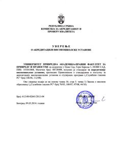 Faculty of Economics and Engineering Management in Novi Sad was accredited as an institution by the Decision on Accreditation of Higher Education Institution, no.: 612-00-636/3/2008-04 as of 19th June, 2009. This certifies that the Faculty of Economics and Engineering Management in Novi Sad fulfils the set standards for an institution accreditation within the field of social-humanistic and technical-technological sciences.