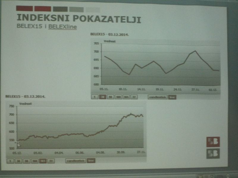 Na samom početku studente i saradnike FIMEK-a, srdačno je ugostila Natalija Nedeljković, ispred PR i Marketing službe Beogradske berze, koja je učinila da jednočasovno predavanje bude krajnje zanimljivo i dinamično. Studenti su imali prilike da čuju o: istorijatu beogradske berze i njenom razvoju, tržištu kapitala R. Srbije, učesnicima na tržištu kapitala ( Komisiji za HoV, Centralnom registru, članovima berze, brokerima i dilerima, izdavaocima, investitorima), ulozi berze i investicionih fondova, investicionim savetnicima, segmentaciji tržišta berze, indeksima BELEX15 i BELEXLINE itd. Takođe, tokom predavanja bio je obezbeđen i direktan prikaz table trgovanja, pa je na taj način studentima omogućno da prate sve promene koje su se tog dana i tog časa dešavale. Predavanje je održano u sali za sastanke i prezentacije koja je nekad služila kao glavna prostorija za trgovanje i u kojoj su se primali telefonski nalozi od klijenata, tako da je ceo ambijent bio svojevrst