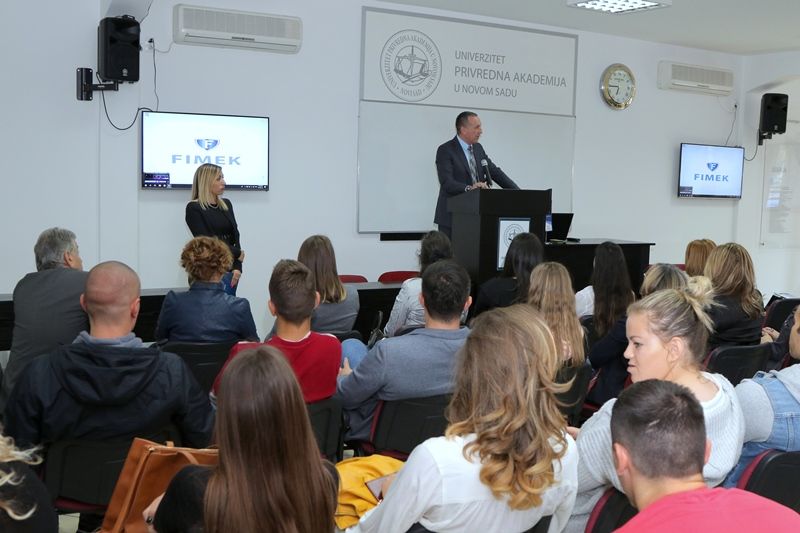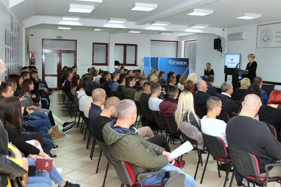 Prof. dr Dragan Soleša, dekan Fakulteta za ekonomiju i inženjerski menadžment poželeo je dobrodošlicu studentima prve godine studija i istakao da je FIMEK, pored 15 studijskih programa na tri nivoa studija, akreditovao i studijski program doktorskih akademskih studija, Računarska tehnika i informatika. „Akreditacija ovog programa doktorskih studija, FIMEK posebno izdvaja od ostalih privatnih fakulteta, na pomenutom naučnom polju.“, naglasio je prof. dr Dragan Soleša. Pored navedenog, prof. dr Dragan Soleša je govorio o novim projektima Fakulteta za ekonomiju i inženjerski menadžment, kao i aktivnostima projektnog tima Fakulteta na domaćim i međunarodnim projekima. Na kraju, prof. dr Dragan Soleša je naglasio da će studenti tokom studija steći znanja i kompetencije koje će im obezbediti status najboljih u struci i još jednom poželeo brucošima uspeh i sreću.