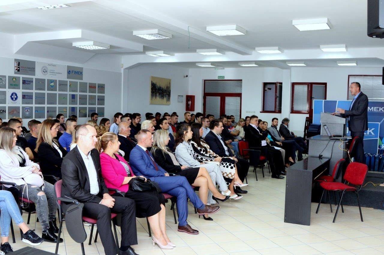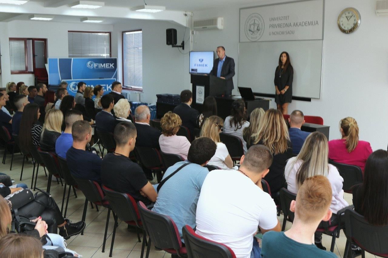 Nakon intoniranja himne ,,Gaudeamus Igiture’’ prof. dr Dragan Soleša, dekan FIMEK-a je brucošima poželeo dobrodošlicu i naglasio da će studenti tokom studija steći znanja i kompetencije koje će im obezbediti status najboljih u struci što im pružaju sva tri nivoa studija i obavezna praktična znanja koja će steći u mnogobrojnim kompanijama sa kojima FIMEK ima potpisane ugovore zajedno sa najsavremenijom metodologijom nastavnog procesa.