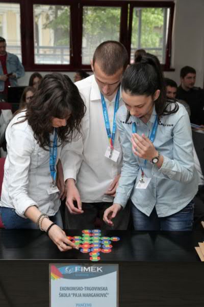 Nagradu za osvojeno prvo mesto uručio je zamenik Pokrajinskog sekretara za obrazovanje, upravu i nacionalne zajednice mr Mato Groznica. Drugu nagradu uručio je Radenko Spremić, direktor MK Commerce. Treću nagradu uručio je prof. dr Dragan Soleša, dekan Fakulteta za ekonomiju i inženjerski menadžment. Četvrtu nagradu uručio je Branislav Maričić ispred edukativnog centra Memorija. Specijalnu nagradu osvojenu kroz nagradnu igru na Facebook mreži koju je osvojila Ekonomsko – trgovinska škola „Paja Marganović“ iz Pančeva uručio je prof. dr Marko Carić, dekan Pravnog fakulteta za privredu i pravosuđe. Svim predstavnicima privrede koji su podržali takmičenje „FIMEK nagrađuje znanje“ uručeni su pokloni i zahvalnice od strane prof. dr Maje Ćirić, prodekanice za nastavu na Fakultetu za ekonomiju i inženjerski menadžment.