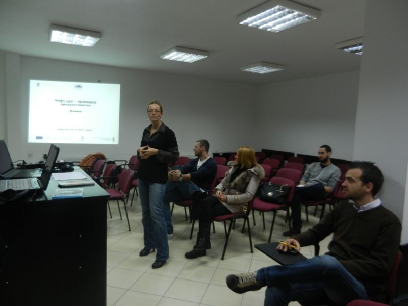 U okviru Info dana - promocije preduzetništva i preduzetničke kulture, a u organizaciji Kancelarije za razvoj karijere, dana 23.12.2013. predavanje je održala Marija Prokopić – rukovodilac projekta , Regionalne razvojne agencije Bačka . Tema o kojoj je Marija govorila bila je vezana za promociju preduzetništva i preduzetničke kulture kao jedne od alternativa zapošljavanja nakon završenih studija.